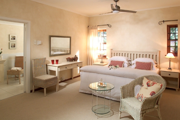 Unique to Port Elizabeth, this Four Star Mediterranean styled Country House, set on 6 acres of park like grounds, enjoys panoramic views of rolling hills and indigenous forests with glimpses of Algoa Bay to the East. Accommodation La Provence offers five Luxury en-suite rooms with private balconies or patios and five en-suite Garden Rooms, which have been converted from the original stables. All rooms have separate entrances and are equipped with fully stocked minibar, tea/coffee tray, complimentary sherry, hairdryer, TV with M-Net/DSTV, telephone/ASDL connection, heater, overhead fan and underfloor-heated bathroom. Facilities Full English or Continental breakfast and light lunches and teas are prepared, on request. Superb, contemporary evening meals are served, but booking is advisable. The facilities include a large secluded pool area, tennis court and laundry service. Activities Port Elizabeth offers the visitor a myriad of activities and experiences, such as walks along the magnificent stretches of sandy beaches and warm, temperate seas; several golf courses, including The Humewood Links; horse rides, Art Galleries, Museums and various ocean activities including whale/dolphin watching cruises, scuba diving and deep sea fishing.